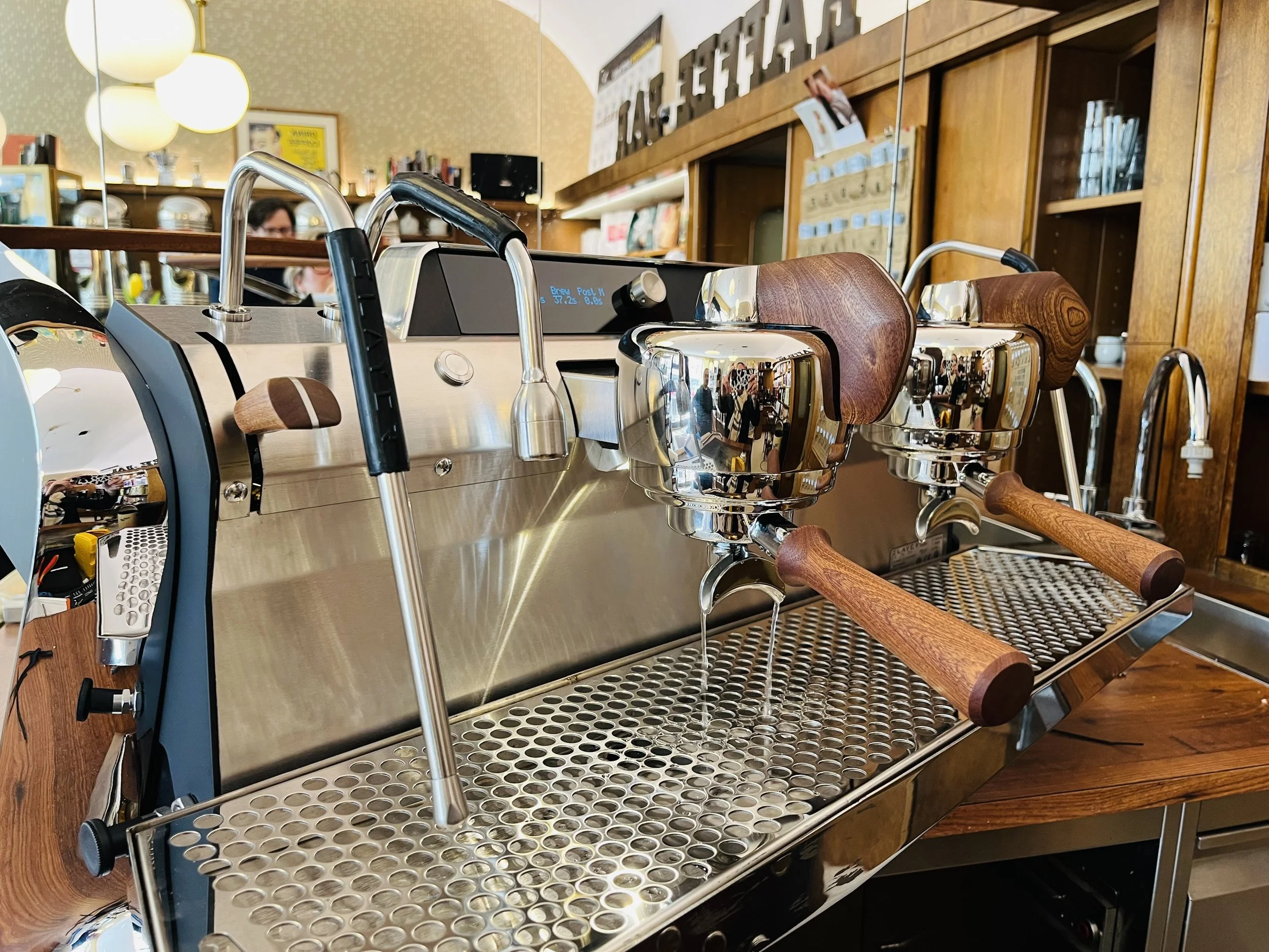 Unsere Espressoköstlichkeiten brauen wir auf der schönen Slayer-Siebträgermaschine - sie wurde speziell für die Anforderungen professioneller Baristi designed und ermöglicht mit jeder Tasse beste Kaffeequalität. Gemeinsam mit dem schönen denkmalgeschützten Ambiente von 1955 ergibt es die perfekte Symbiose für Kaffeegenuss.